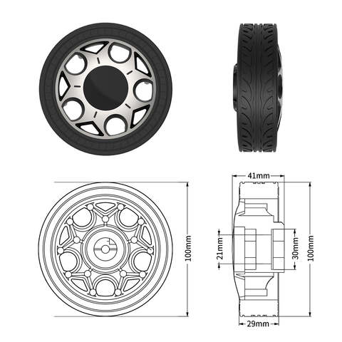 Neumático de goma sólida de 100mm Neumático de alta carga y resistente al desgaste Robot Motor AGV Neumático de coche inteligente